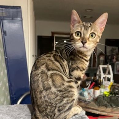 PRA negative and Pk Def N/N DOB: 02/01/2023 Nyiah is a 7/8 Asian Leopard with an amazing flow of a Clouded Leopard Rosetted patten. She is one of the sweetest souls that I have ever owned. Everything about her says love and for being 7/8 Asian Leopard that's saying A LOT!!! She comes to us from Kat at Signature Cats in Maryland. Nyiah is a Stunning Girl with an amazing spunky attitude to match. She will be mated with our Asian Leopard boy, Mondo and we can't wait to see what they produce for our Early Generation program.
